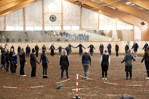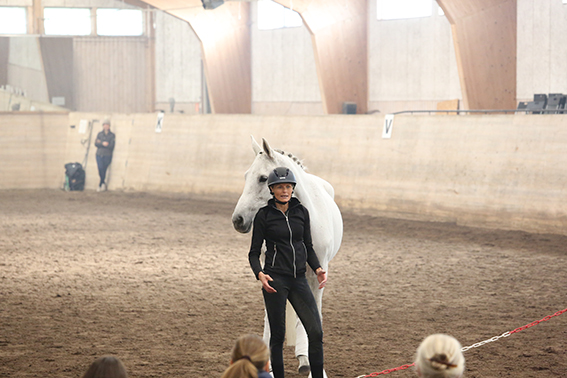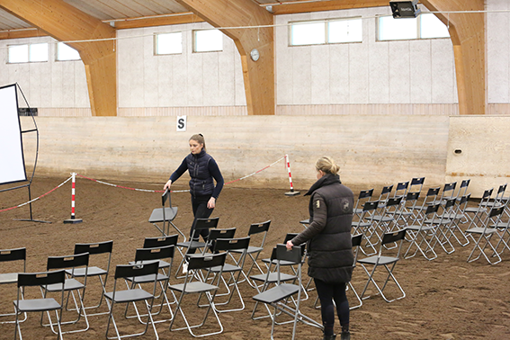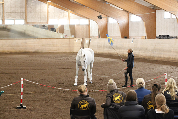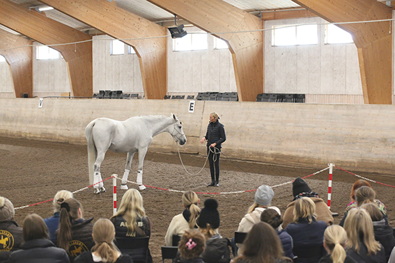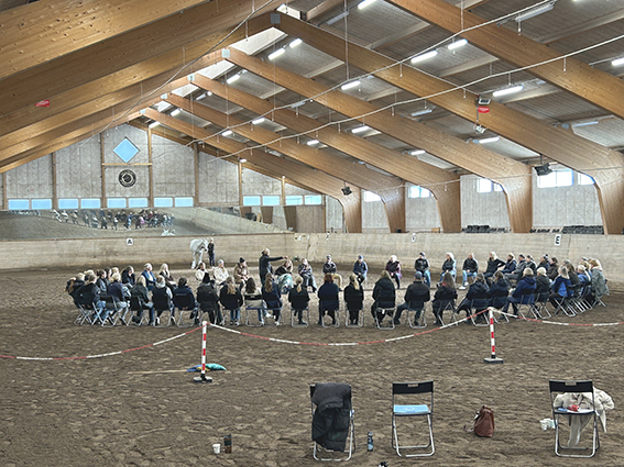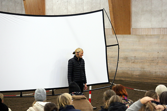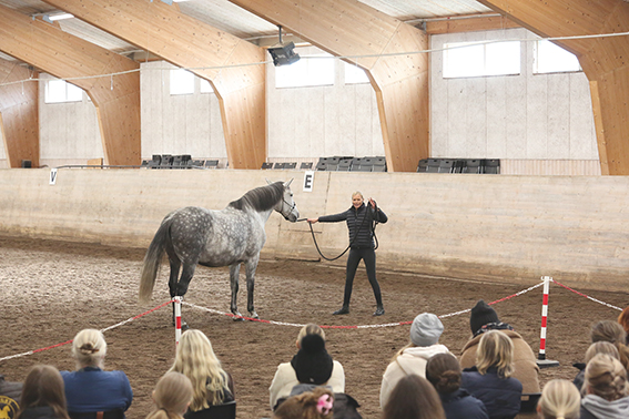 Under den sista söndagen i september var vi ett 50-60 tal ryttare och hästintresserade som lyssnade på Anna Blomberg när hon höll sin clinic. Hon delade generöst med sig av sin långa erfarenhet med att träna hästar och hur hennes förhållande och sinnesnärvaro spelar stor roll. Clinicen handlade mycket om vårt förhållande till hästen, kommunikationen mellan människa och häst samt hur viktigt det är med att vara hundraprocent närvarande i arbetet/umgänget med hästen. Hon hade även ett par övningar med ett fokus på kommunikation där samtliga deltagare var med. Anna visade praktiskt hur hon arbetar med en häst som hon ska börja jobba med där det går ut på att lära hästen att lyssna på hjälperna, slappna av, bli lösgjord och få förtroende för henne. Hon visade arbetet på sin egen häst och med Vällingbys fina Bonus, som Anna aldrig hade träffat.